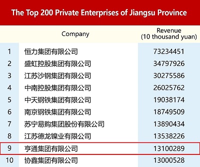 The list was released on September 23 by the Jiangsu Federation of Industry and Commerce. Also released were the "2022 Top 200 Private Enterprises of Jiangsu Province", where Hengtong Group ranks 9th, and the “2022 Top 100 Private Manufacturing Enterprises of Jiangsu Province” with Hengtong Group ranking No. 7.
